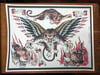 This roughly 12x16 Giclee Print is from the Lockdown set. Its inspired by some traditional tattoo imagery, as well as other references from my library. It's printed on watercolor paper.